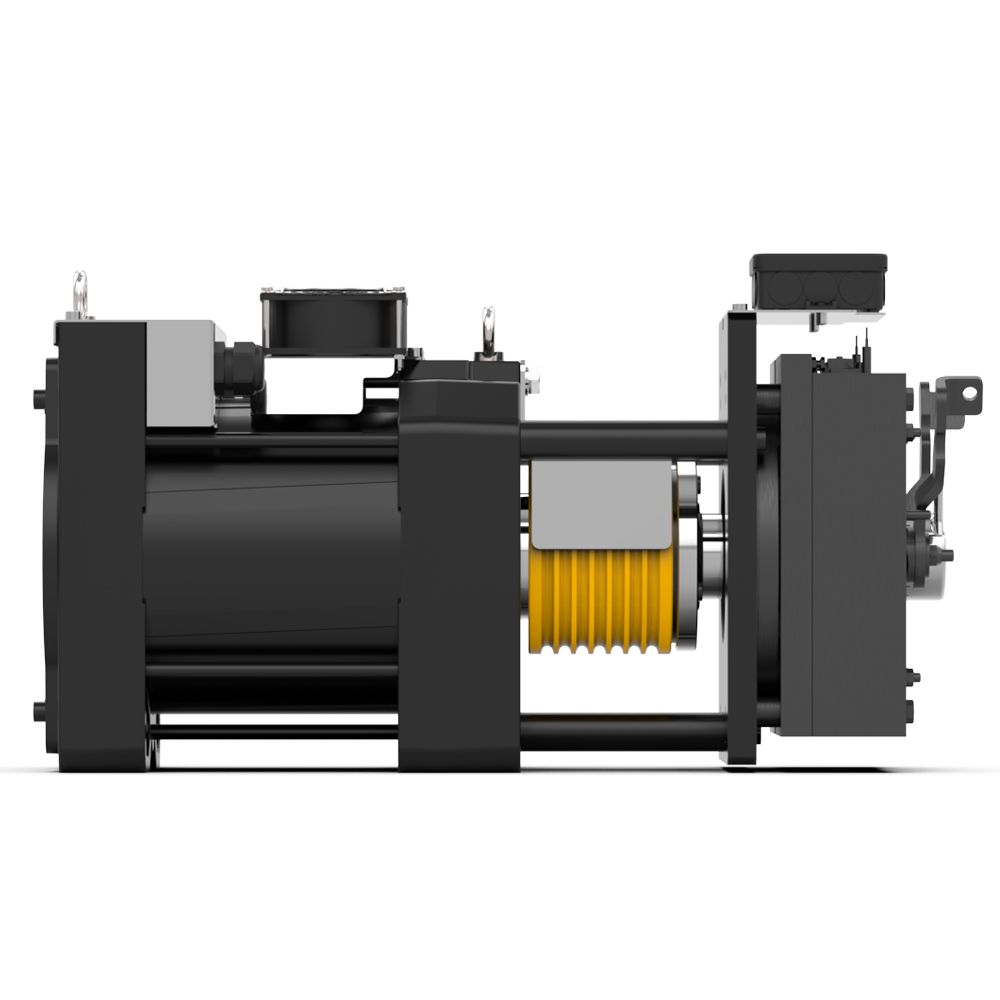Диапазон тяговых моментов 90 … 2350 Нм (S3-40%) делает его подходящим решением для подъема до номинальной грузоподъемности 3500 кг в соотношении 2:1 для скорости автомобиля до 3 м/с (другие по запросу).